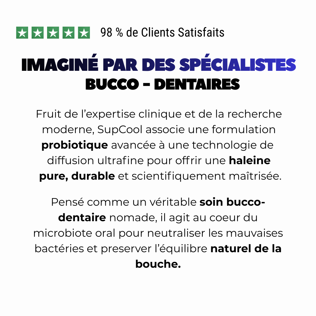 Élimine 99,9 % des bactéries responsables de la mauvaise haleine grâce aux probiotiques naturels.